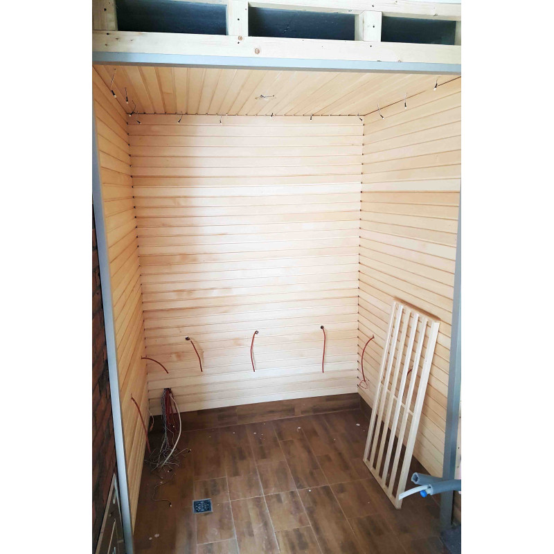 The interior decoration of the sauna is linden wood benches, walls, ceilings and floor gratings. The benches are impregnated with a special paraffin oil. The oil protects the wood surface from the effects of moisture, making the wood easier to clean and maintain. The walls are varnished with water bath varnish, which protects from the effects of dirt, water and alkalis.
