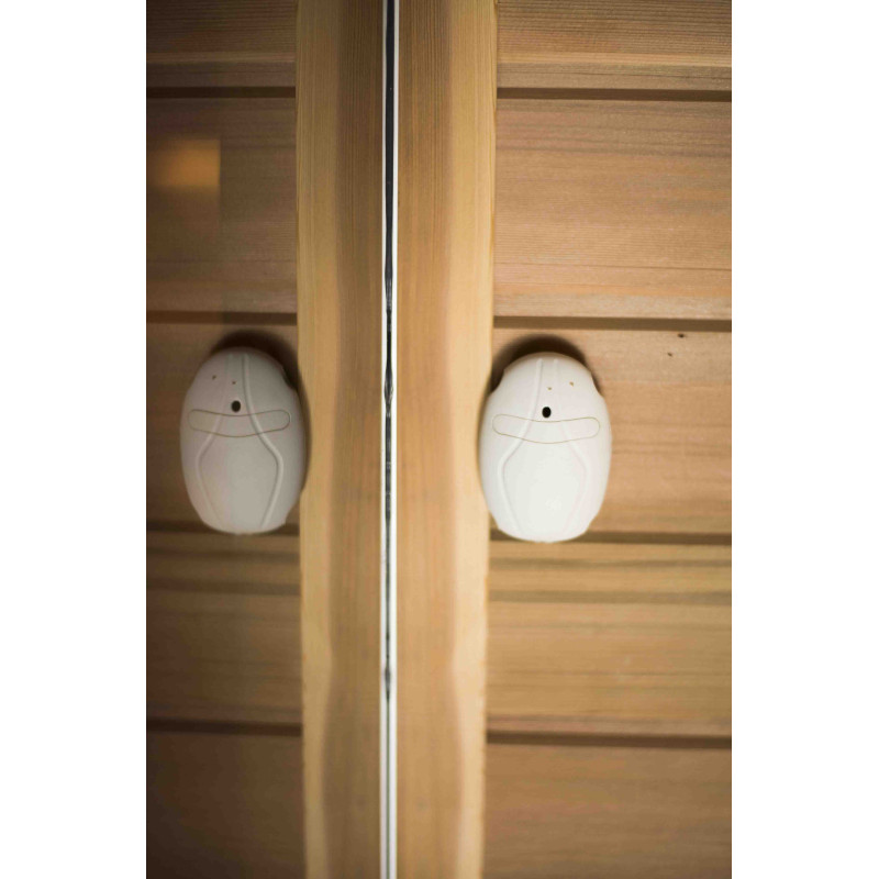 The walls and ceiling of the sauna are made of the highest quality cedar wood, the benches are made of the highest quality linden wood.