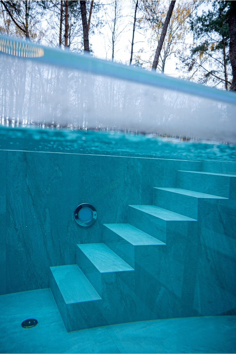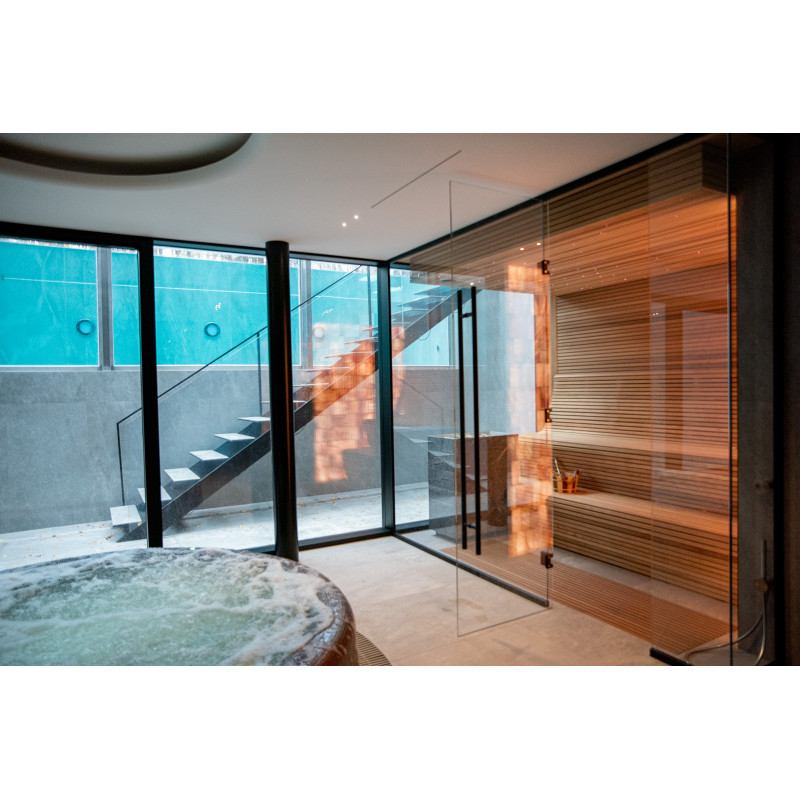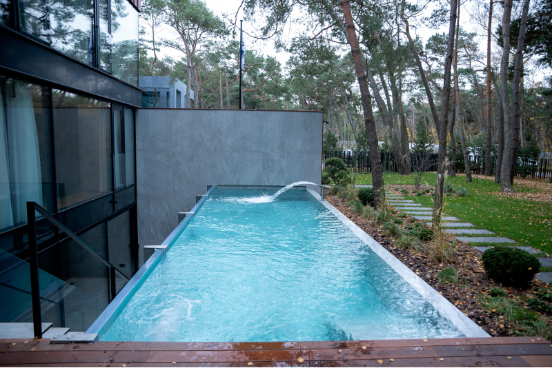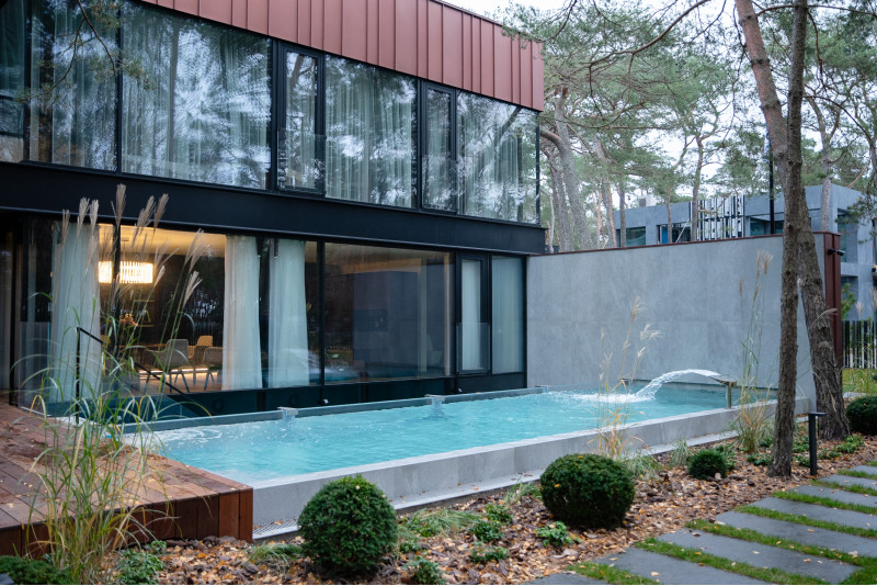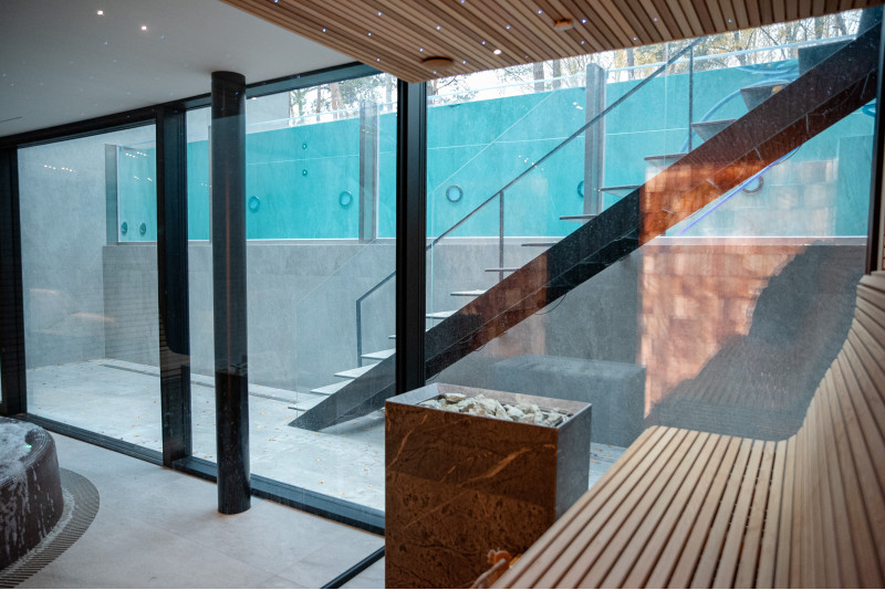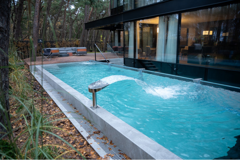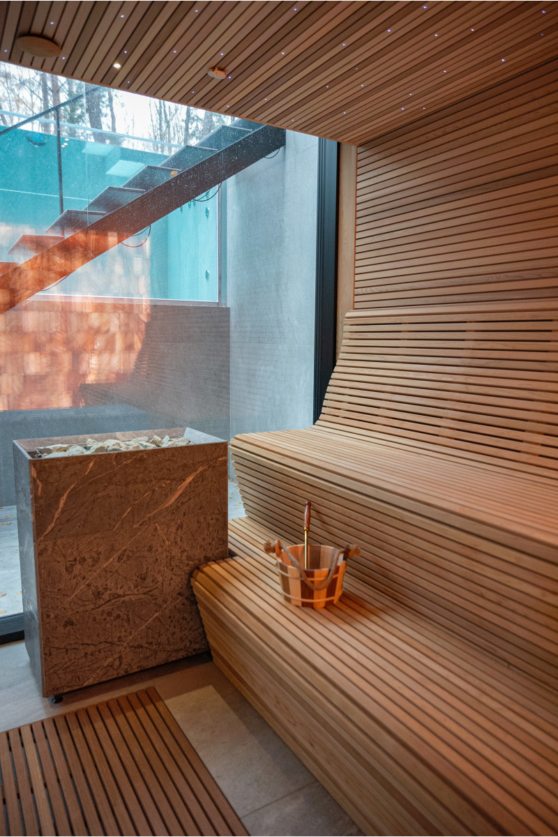 Individual project of a sauna, outdoor pool, pouring device and whirlpool