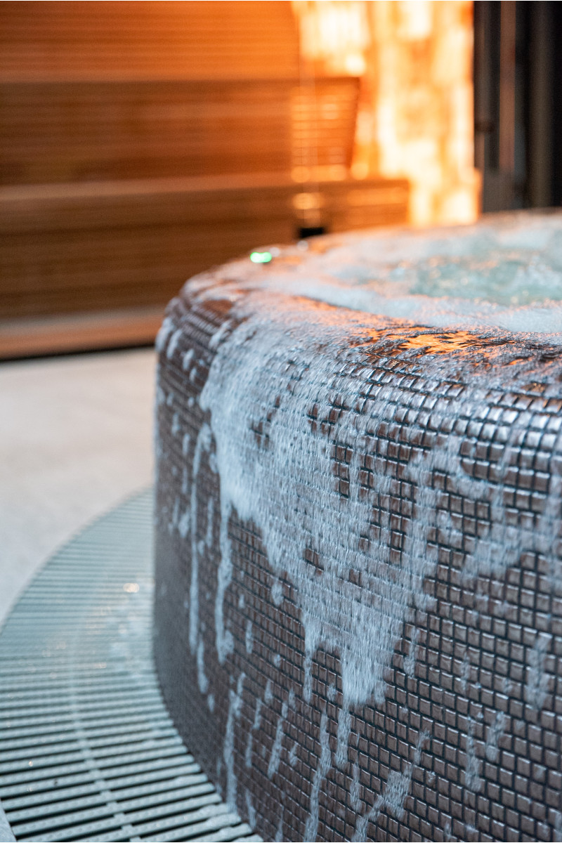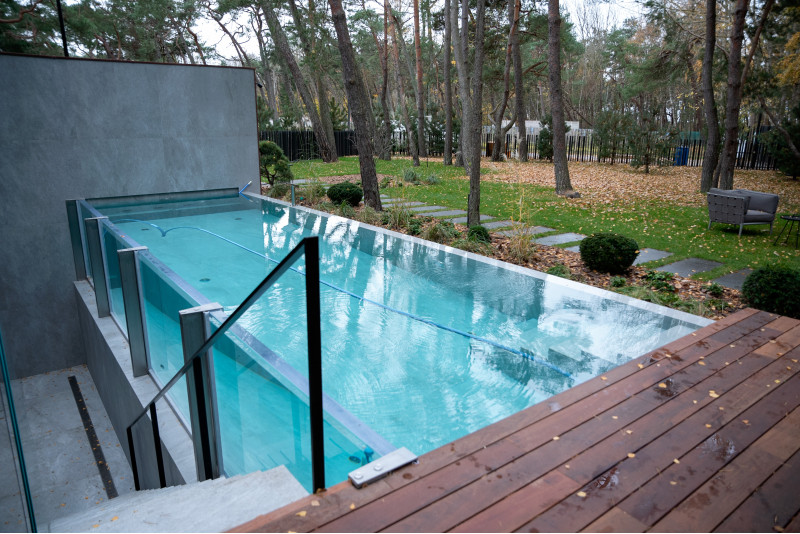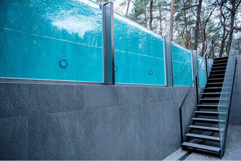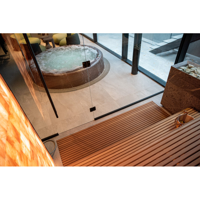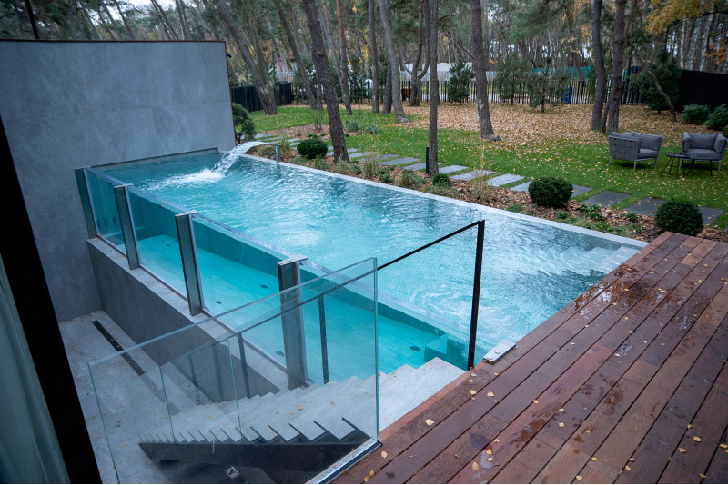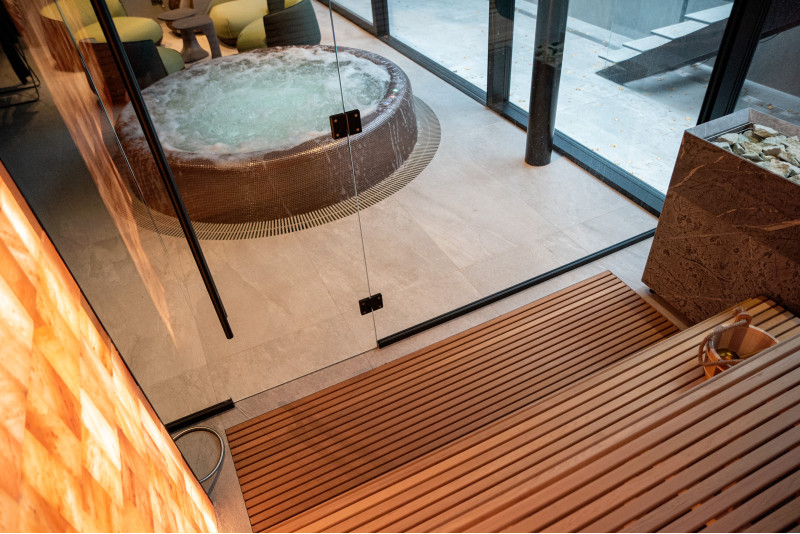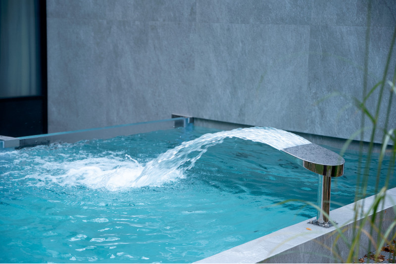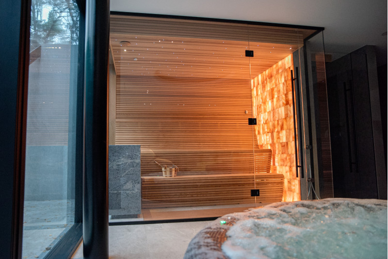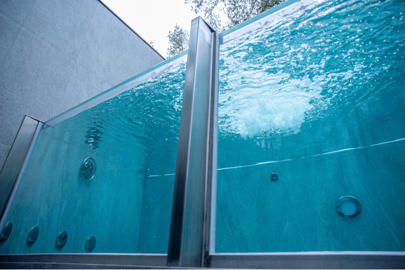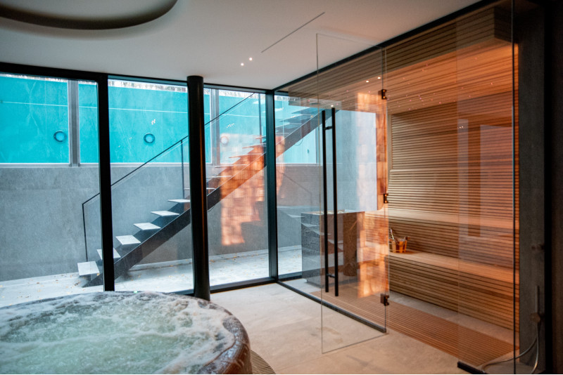 Individual project of a sauna, outdoor pool, pouring device and whirlpool