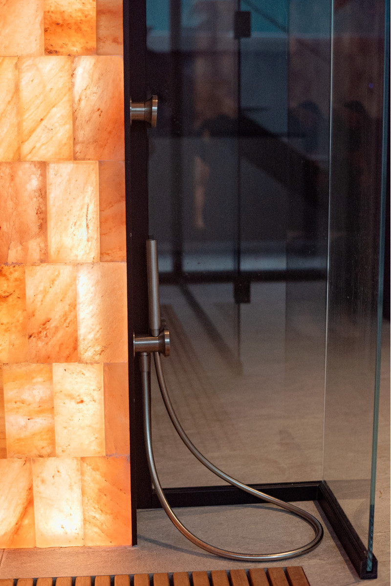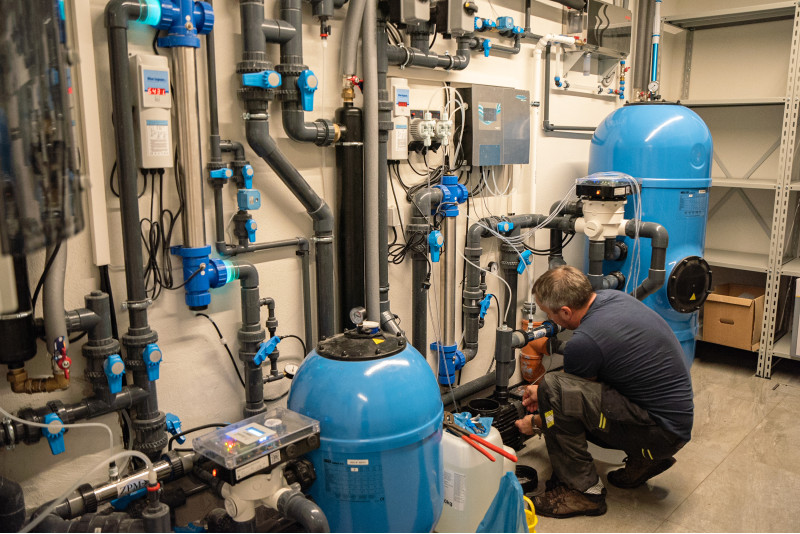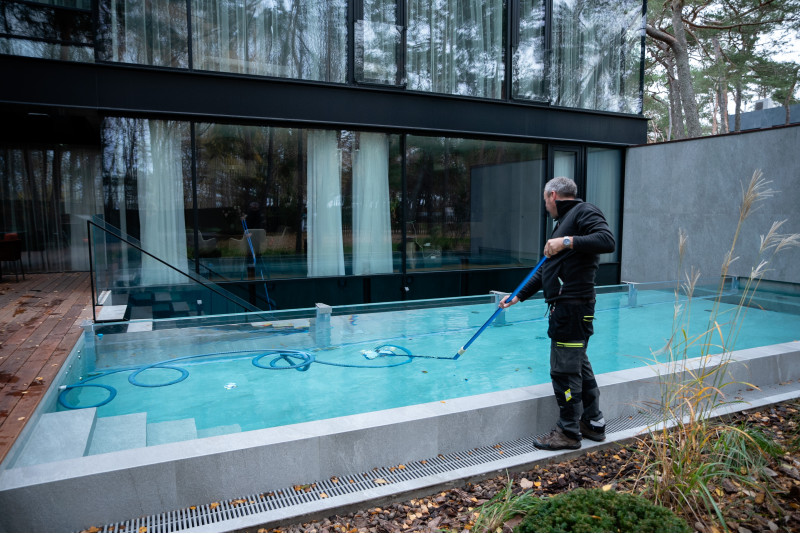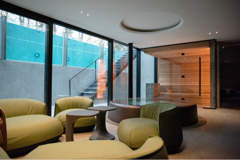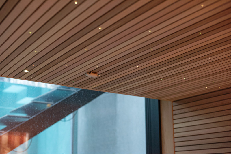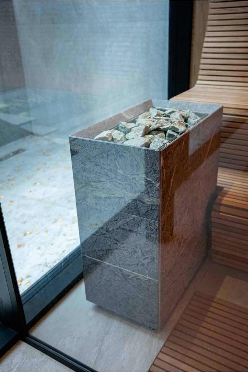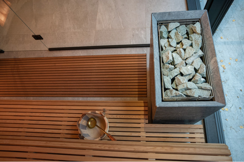 Individual project of a sauna, outdoor pool, pouring device and whirlpool