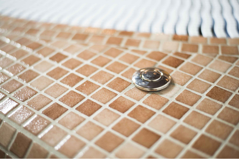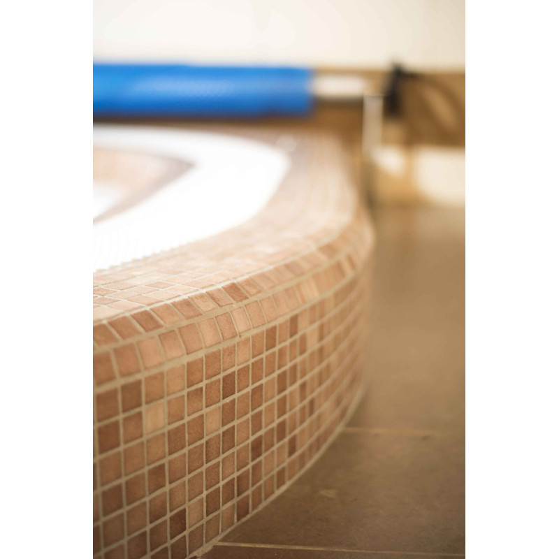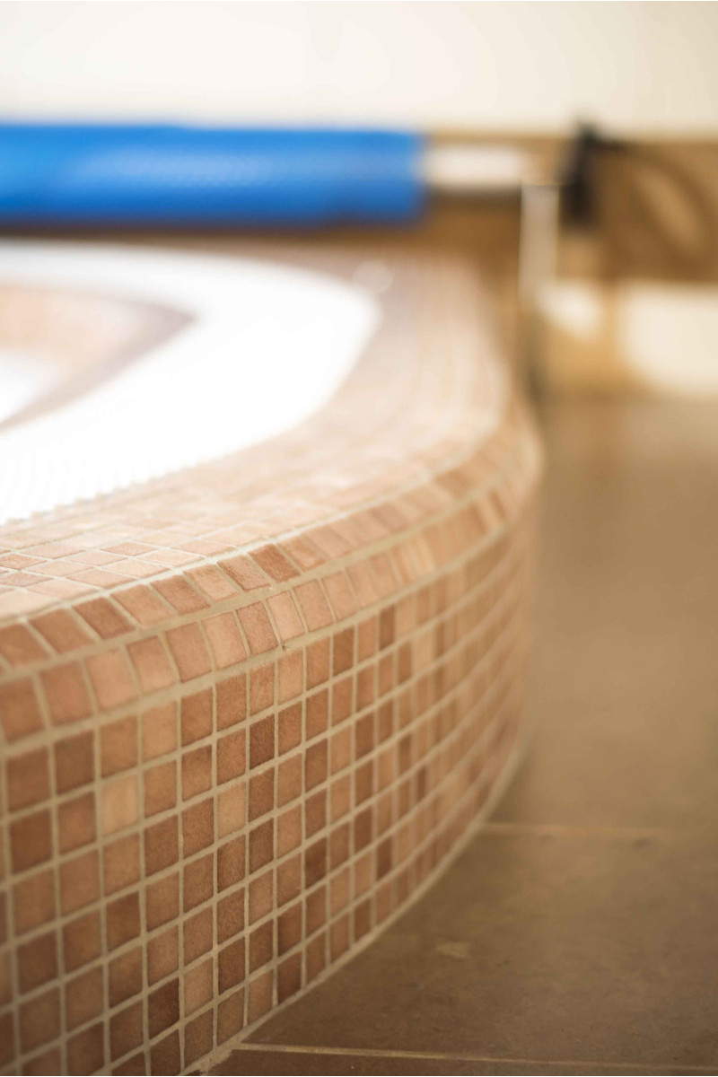 - Tiles - the inside and outside of the pool are covered with neutral colored crushed glass mosaic.