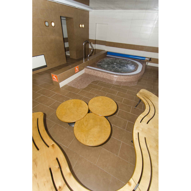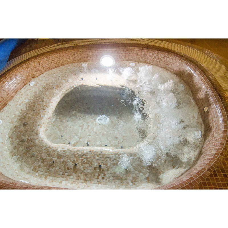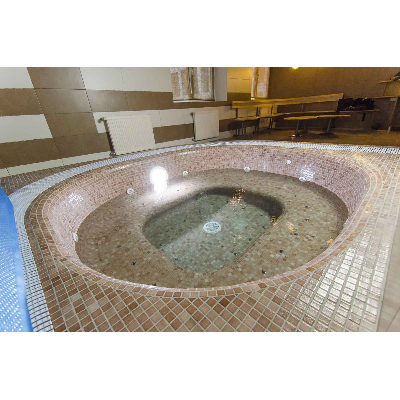 The forms of the whirlpool are made of special extruded polystyrene, according to individual order. The pool can accommodate many people at a time, as seating is arranged around the entire pool.