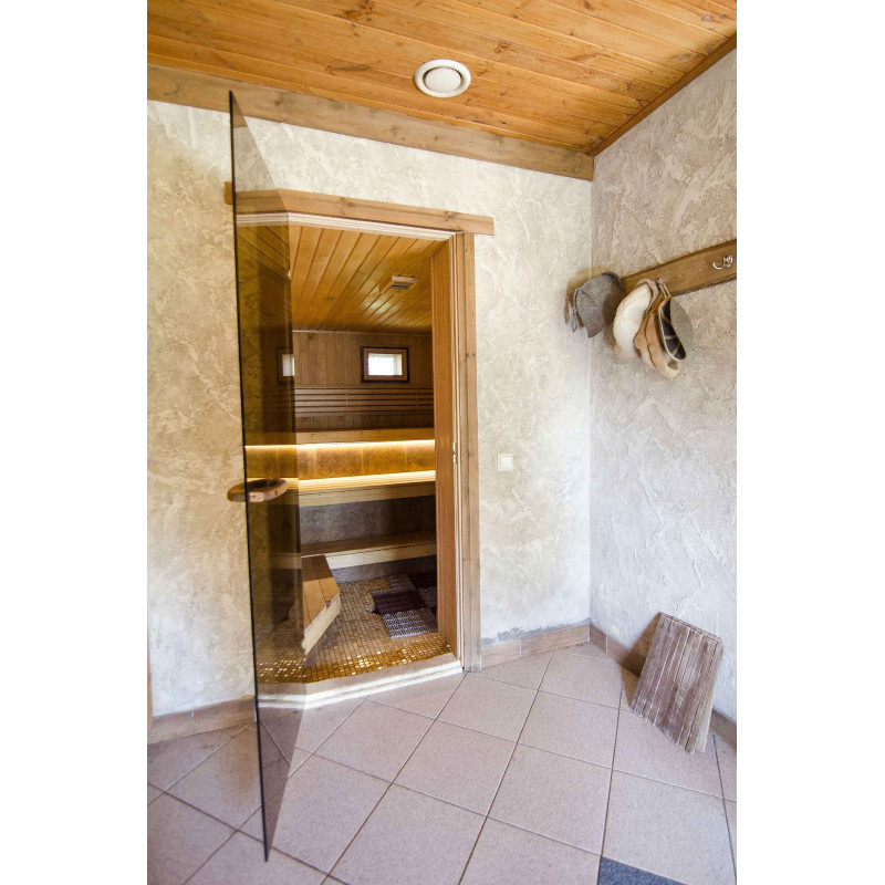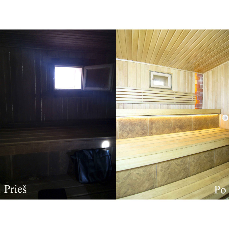 Replaced window - wooden frame, tempered glass. Worn sauna doors have been replaced with new ones - specially designed for saunas with tempered glass and wooden frame. This glass is heat treated, 5 times stronger than normal. The frame is made of specially prepared wood to prevent deformation of the frame due to fluctuating temperatures.