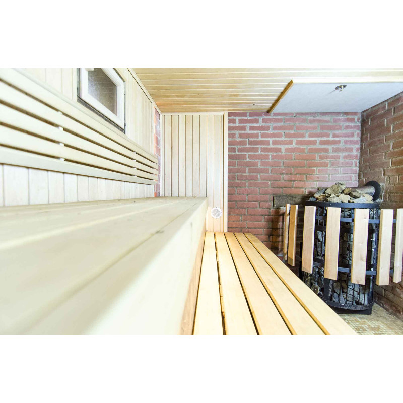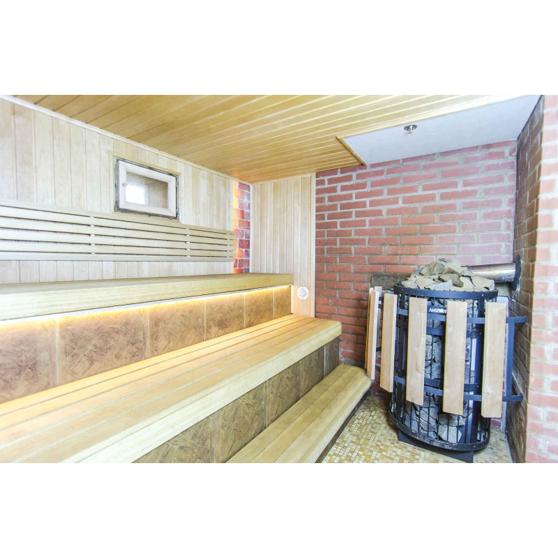 Speakers are installed, allowing you to relax even more while listening to music and enjoying the sauna.