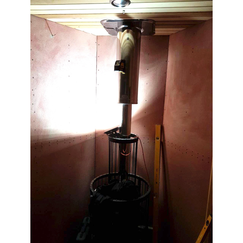 An oak, 20 l, cold water pouring tub is hung in the reception area for cooling down after the sauna. It's a great and easy way to rejuvenate.