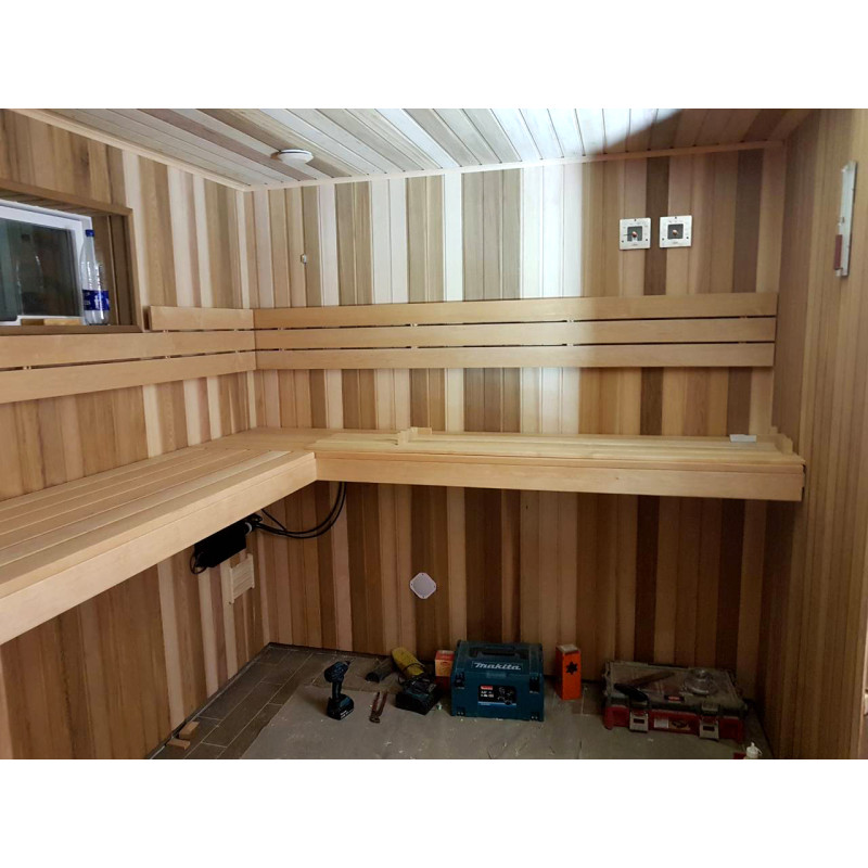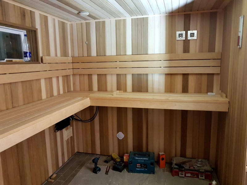 Due to the high durability of the sauna, alder and Canadian cedar wood were chosen. Cedar wood tends to absorb the least amount of heat, which gives the sauna more comfort.