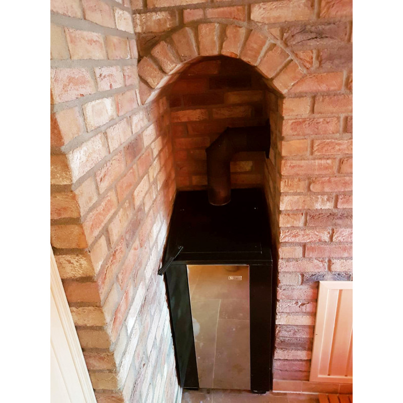 Heater - Narvi Steam Master Tunnel WT - a very high quality, heat accumulating sauna heater. This heater can hold up to 100 kg of stones. Opening the top lid of the heater and pouring water on the hot stones will produce plenty of pleasant steam. The heater is made of special, extra-strong steel, the body is enamelled and the firebox is made of 25 mm fireclay bricks. The heater heats the sauna in a relatively short time - 1 - 1.5 hours.