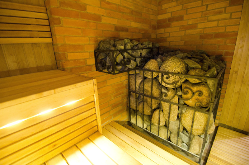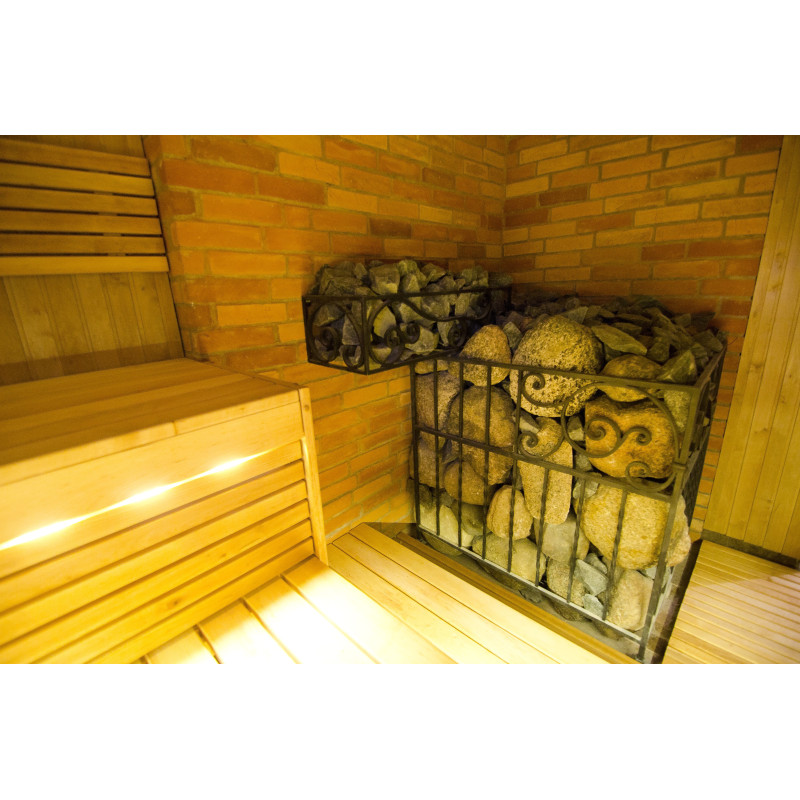 Kretinga has a sauna of exclusive design, where a stylistic closure of the ends of the benches and a blacksmith's heater create a special image.