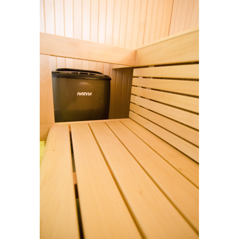 Lighting - Harvia lamps installed under a wooden backrest provide part of the relaxing effect of the sauna.