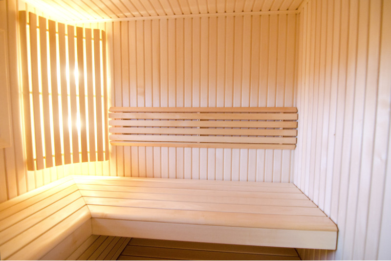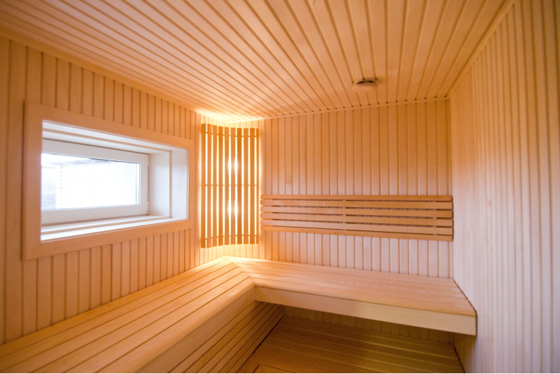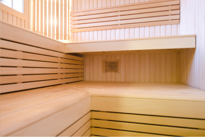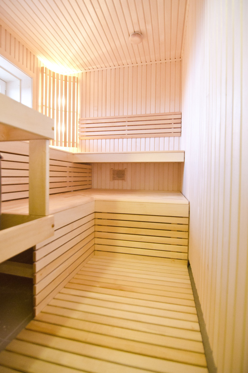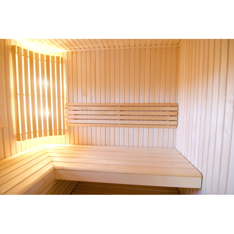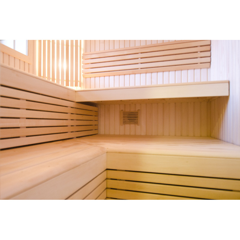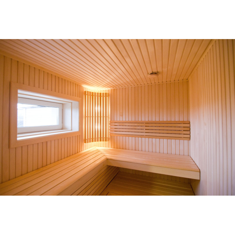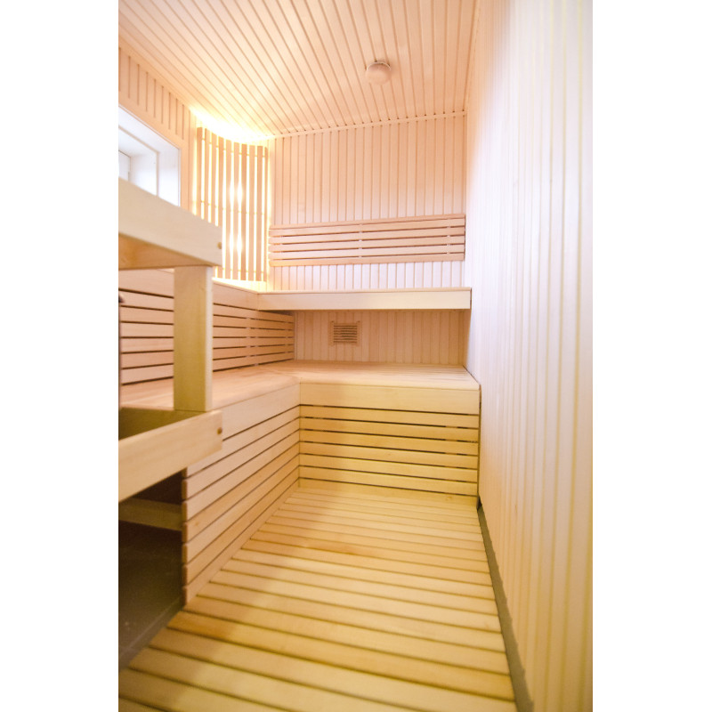 Wall cladding and benches are made of the highest quality linden wood. The wood is extremely light, giving the sauna a sense of space.