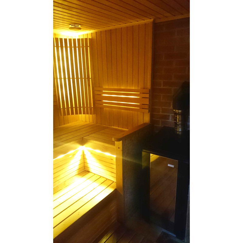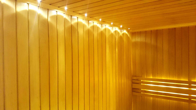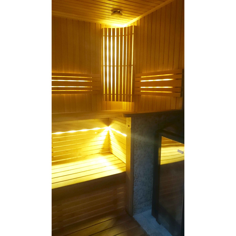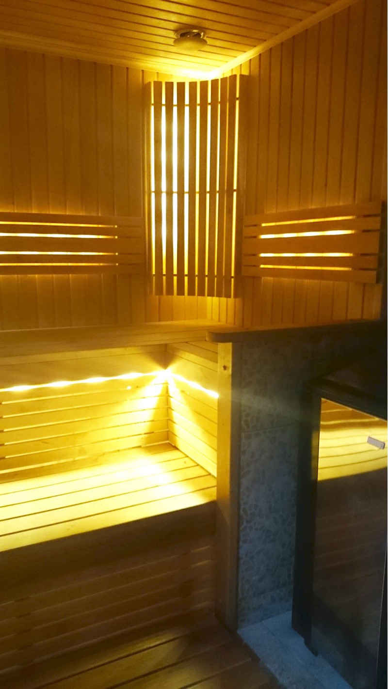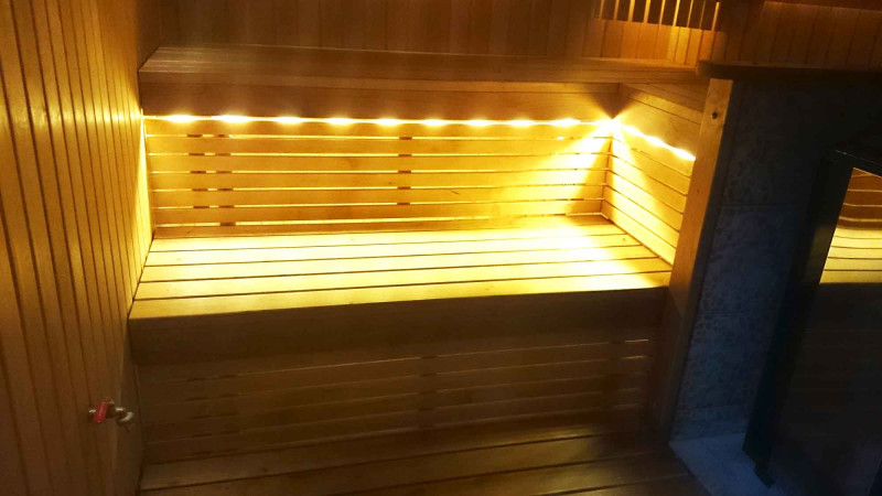 Sauna lighting is a very important element, because it is the lighting that provides part of the relaxing effect of the sauna. This sauna is equipped with LED lights on the ceiling, under the loungers and backrests. Luminaires are resistant to moisture and high temperatures.