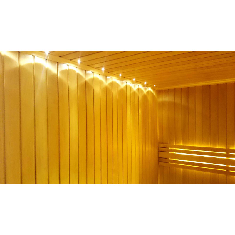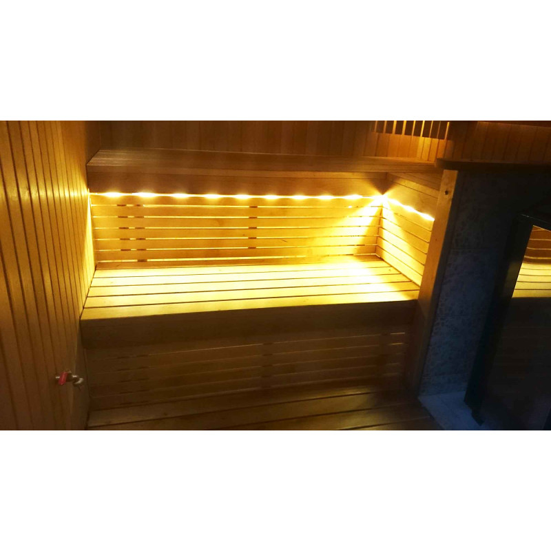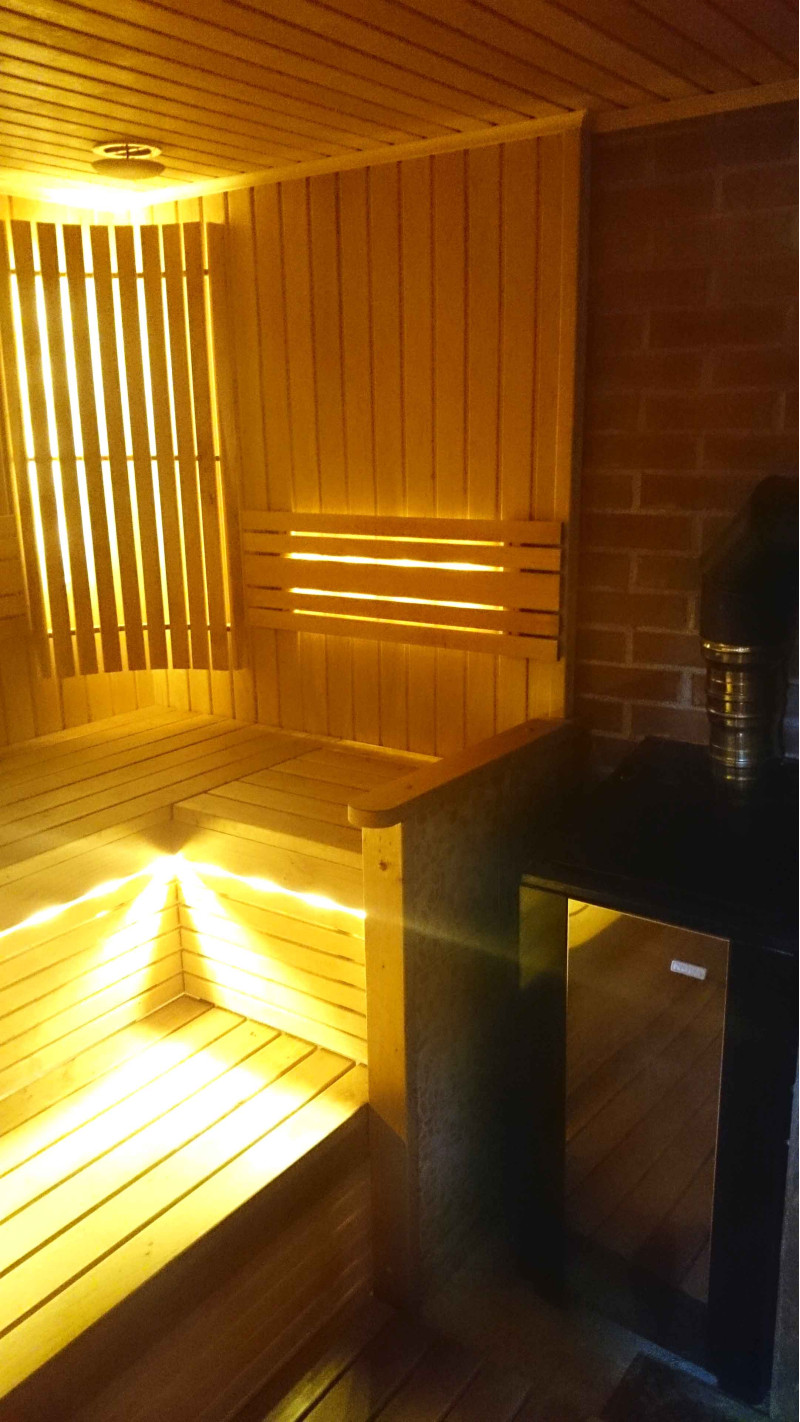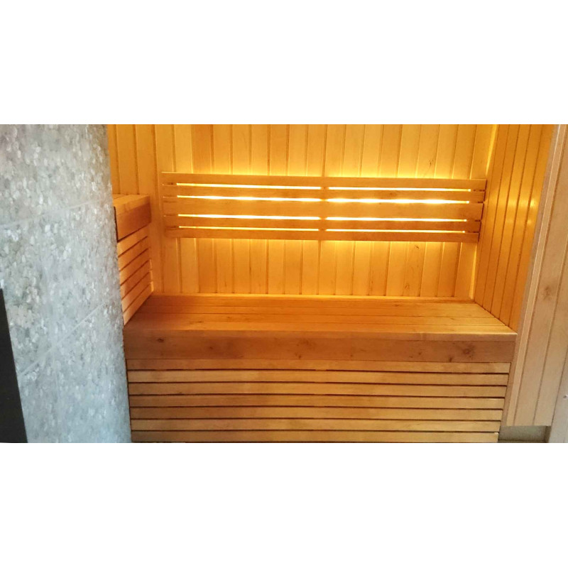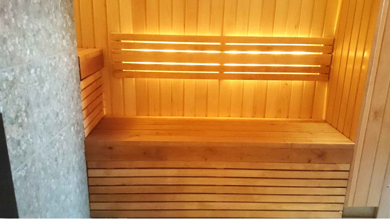 Sauna lighting is a very important element, because it is the lighting that provides part of the relaxing effect of the sauna. This sauna is equipped with LED lights on the ceiling, under the loungers and backrests. Luminaires are resistant to moisture and high temperatures.