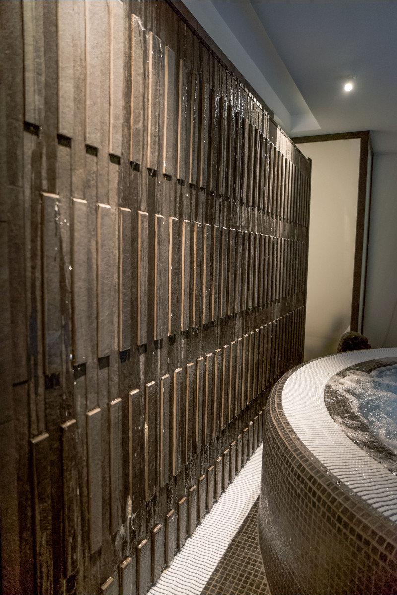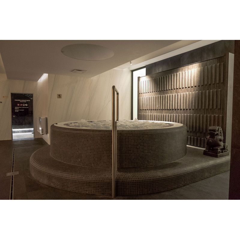 The pool is framed by a wall of running water. Water collection, leakage, filtration systems are installed. Falling, dripping water creates a tropical exotic style at the spa. The atmosphere created by the East allows you to experience an exclusive rest.
