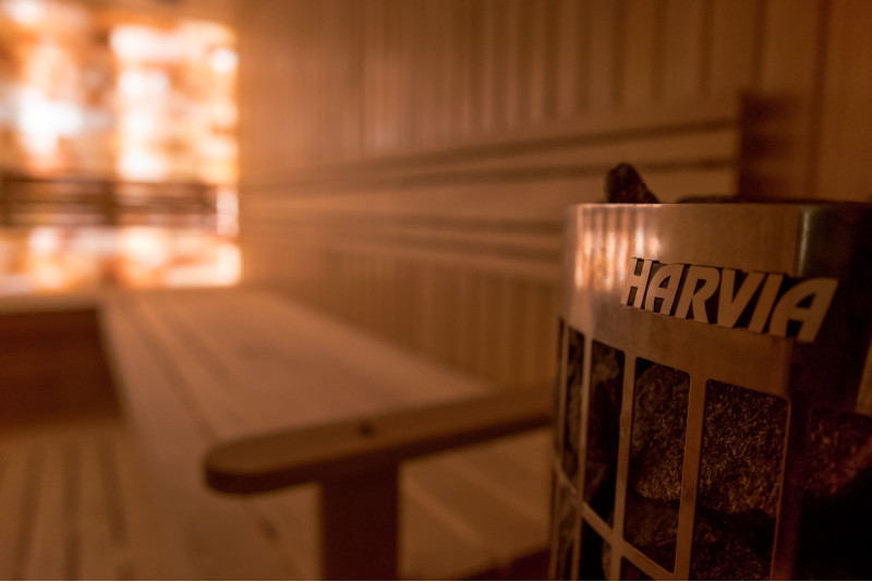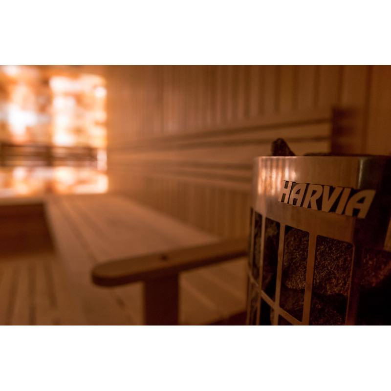 Equipment - Harvia heater, which holds a particularly large amount of stones, so you can enjoy a rich and pleasant steam.