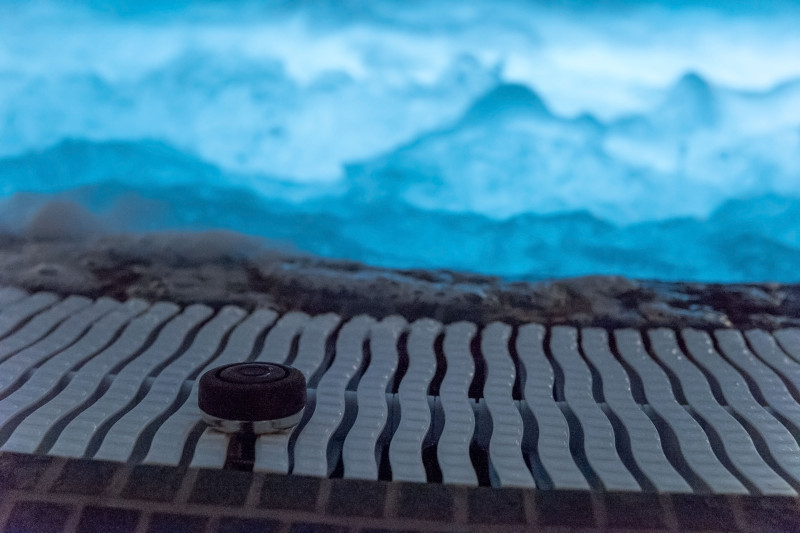 The hydromassage pool is equipped with automatic dosing of chemicals to ensure constant water cleanliness.