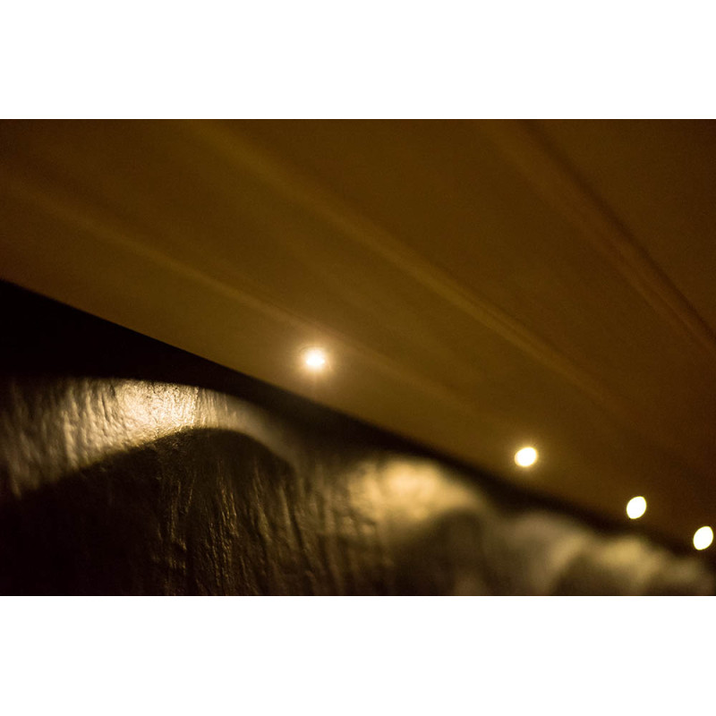 - the lighting system uses a "starry sky" fiber optic system and an LED strip under the beds,