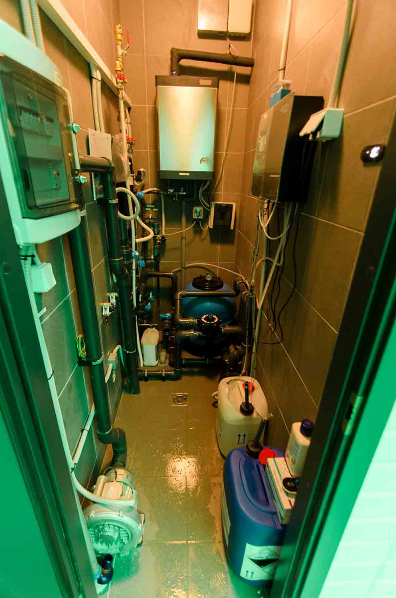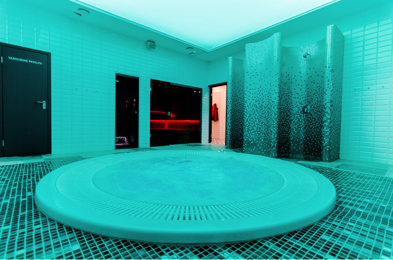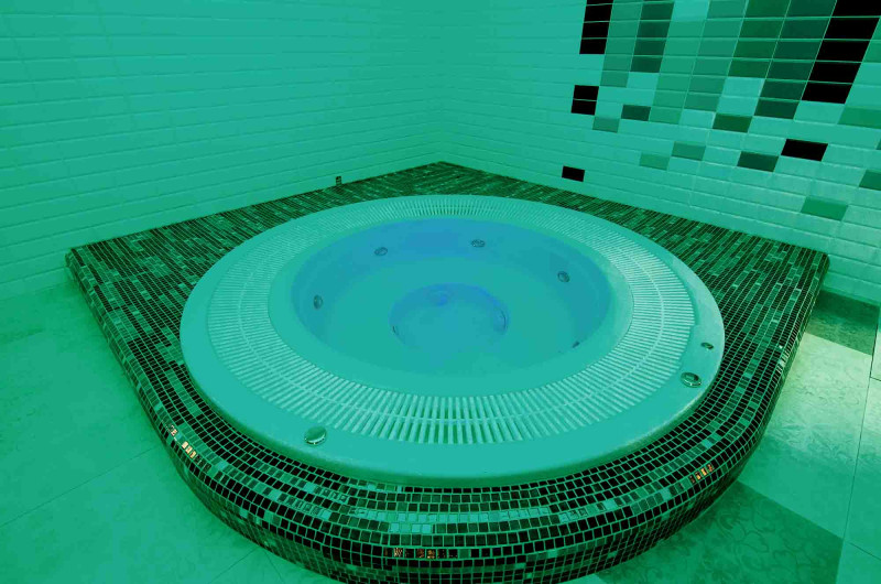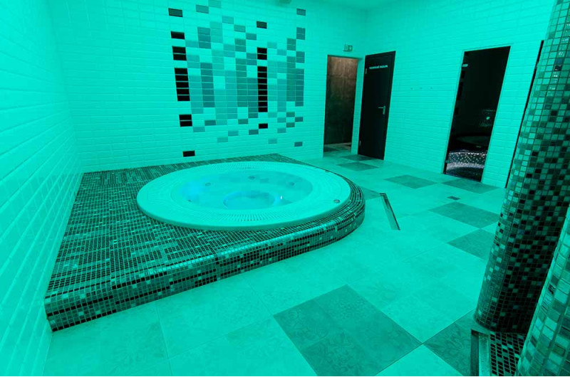 Hydromassage pool - commercial. Tiles around the pool - glass mosaic. Equipment: