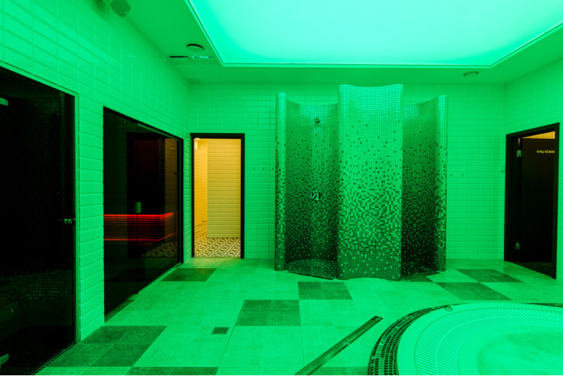 Abachi wood is chosen for the sauna room - it is friendly to the skin, because it does not burn or heat up, so it is convenient to pamper yourself with the pleasures of the sauna. Equipment: