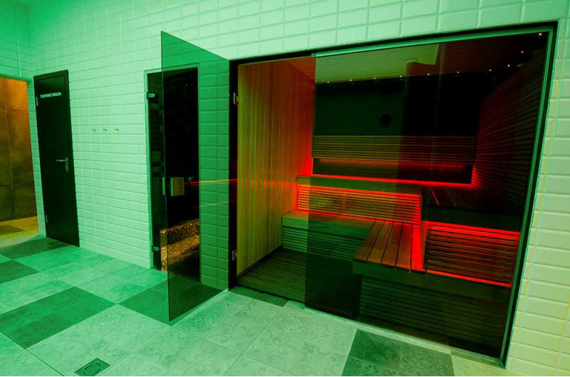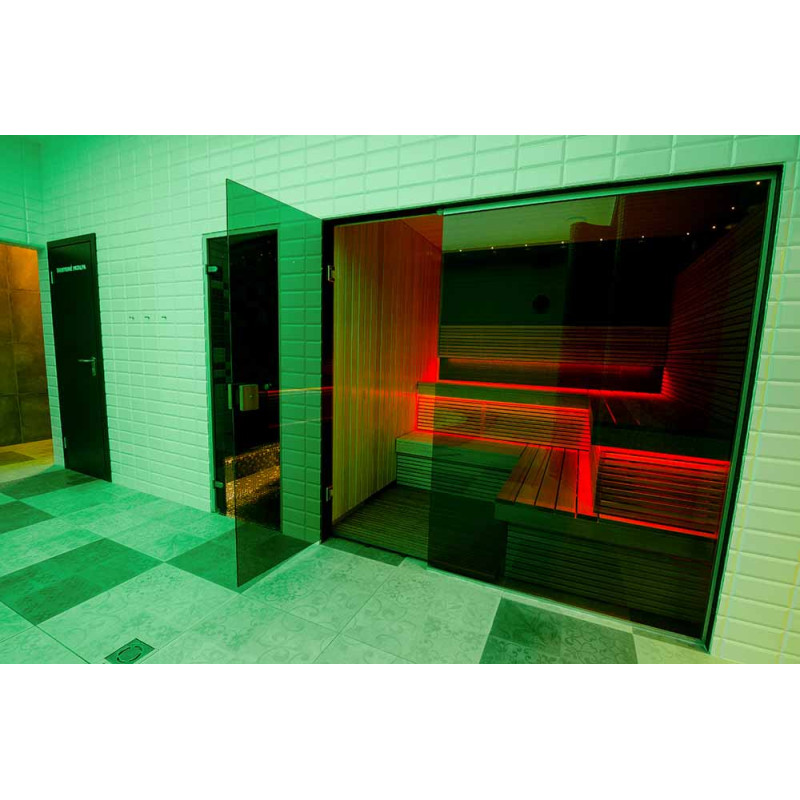 - creating a seamless style, the glass showcase installed in the sauna expands the space and creates the impression of lightness, gives the room light and modernity. Glass showcase glass - tinted, tempered, aluminum frame,
