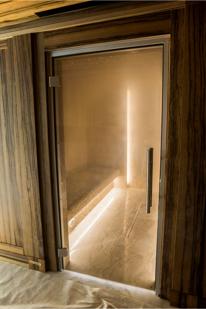Installed in the French ski resort, Courchevel, a sauna with a steam function and steam baths.