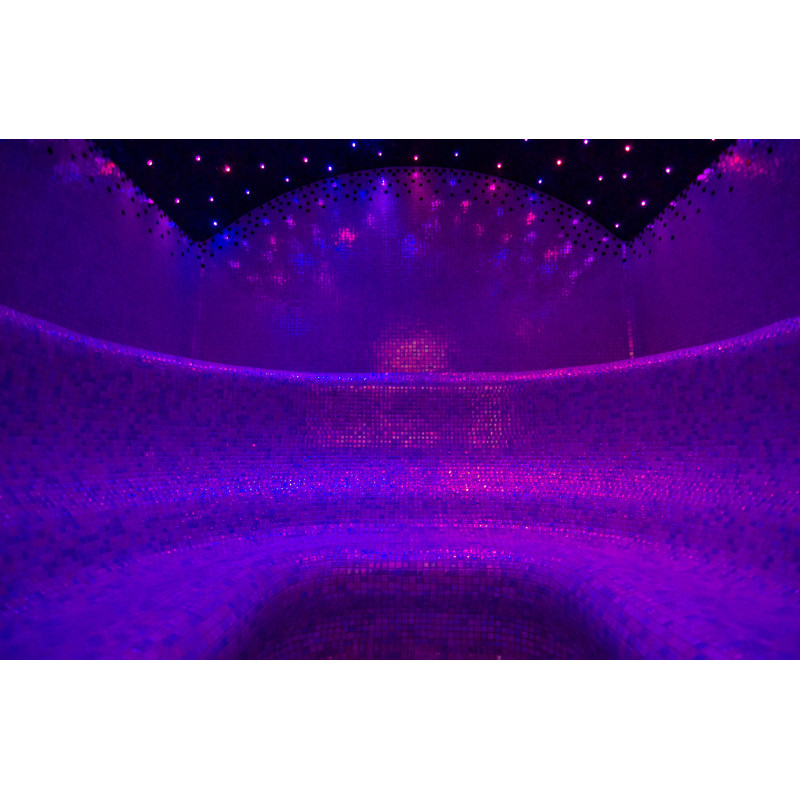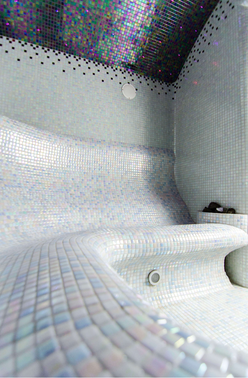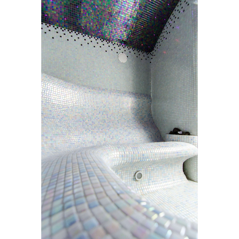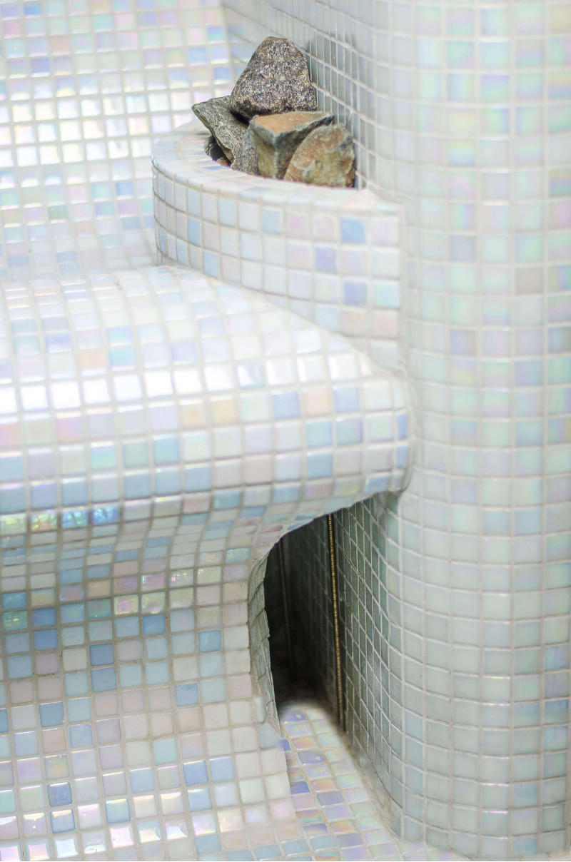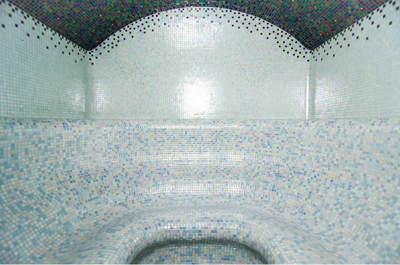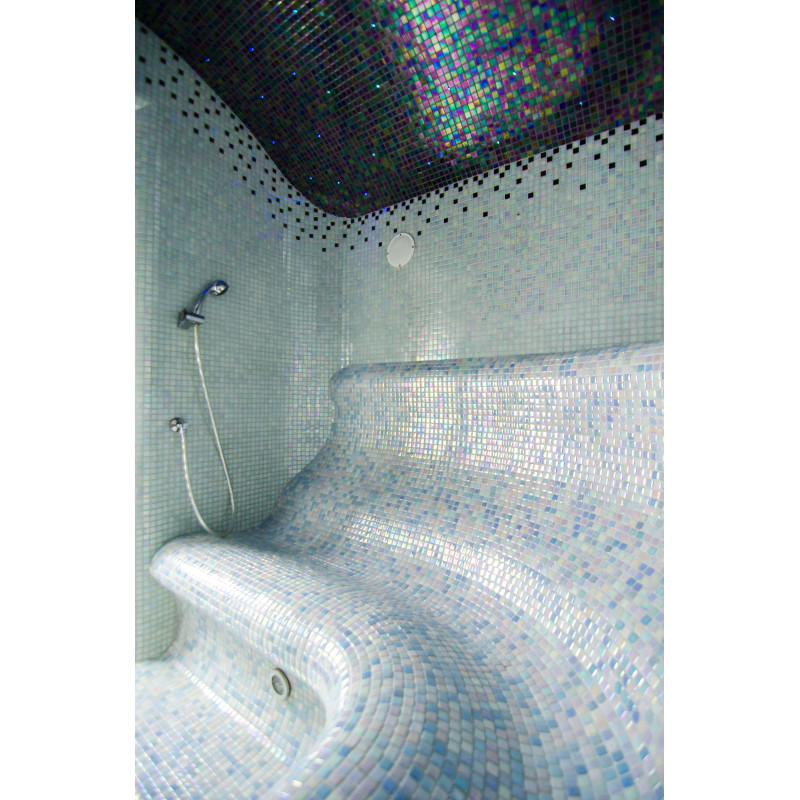Steam sauna benches, walls and ceilings are made individually from special extruded polystyrene. The ceilings are arch-shaped, typical of every steam room, so that no steam condensate can accumulate on them. Sitting positions, curved comfortably shaped benches for a pleasant rest in the sauna. The benches are drained to prevent sweat and moisture from accumulating on them.
