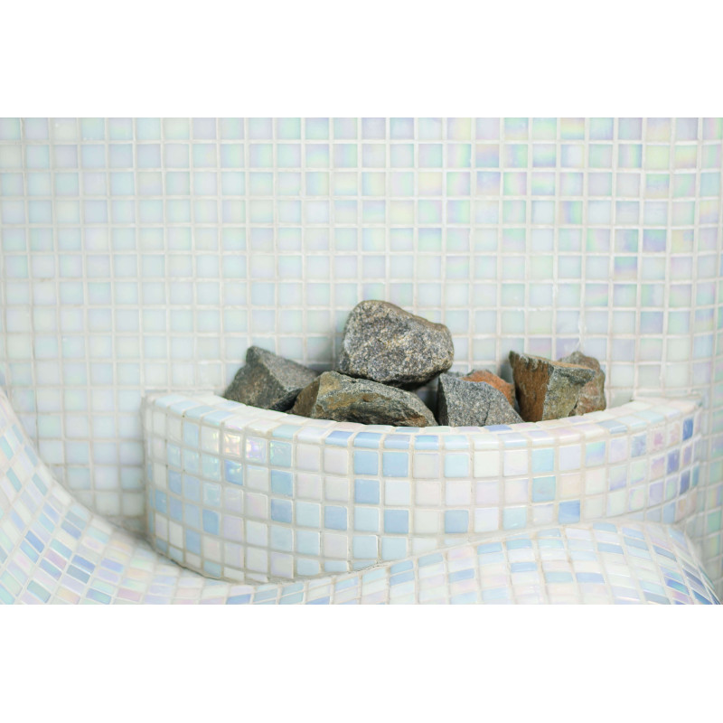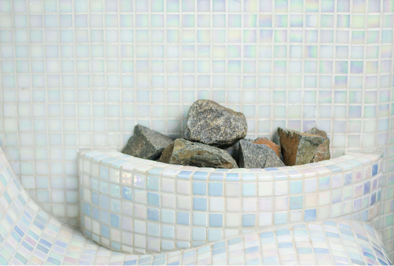The sauna also has a steam vase, which acts as a steam protection tube through which steam enters the sauna. The vase is decorated with olivine diabase stones.