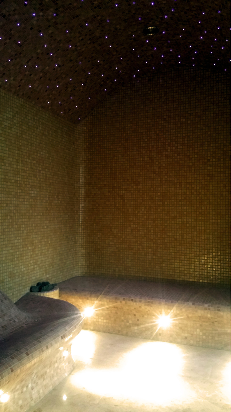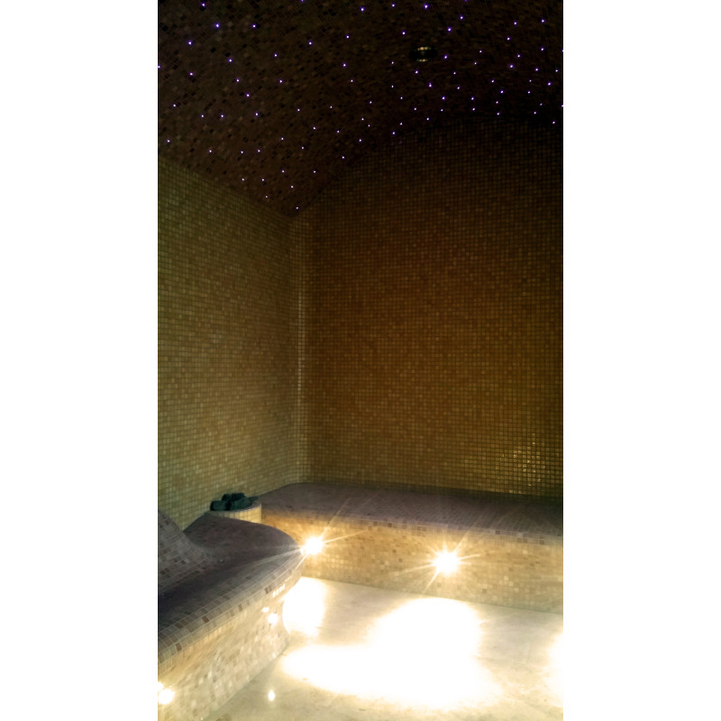 Fiber optic lighting system for the ceiling - "starry sky". Under the benches, LED lighting is provided to illuminate the floor.