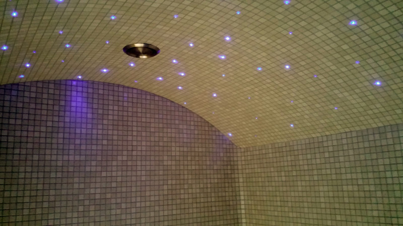 The lighting system is "starry sky". This lighting creates an impressive and cozy view in the steam sauna. Under the loungers there is lighting to illuminate the floor.